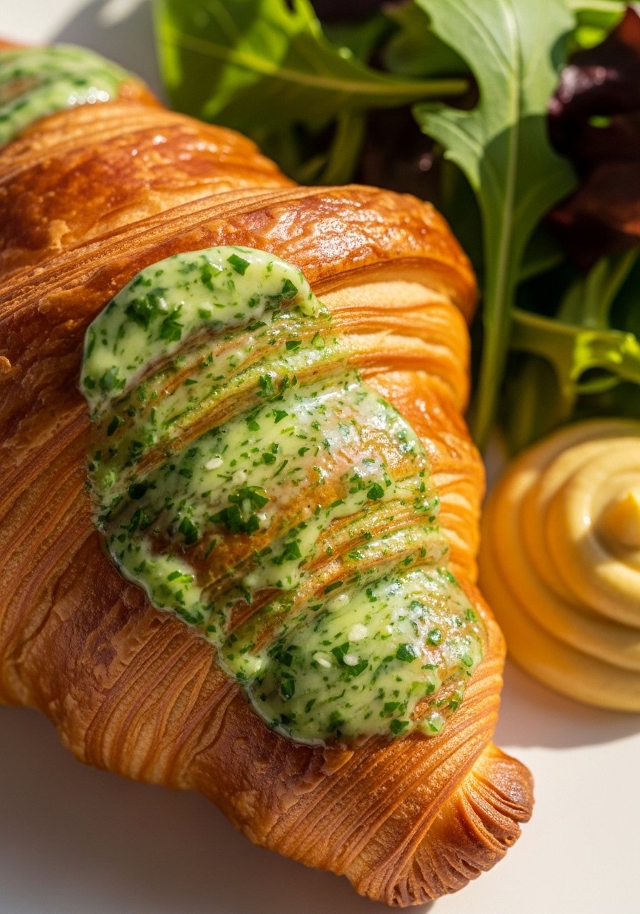 Flaky croissants glazed with garlic-herb butter for a buttery, crisp bite—fancy yet simple for crowds. A pastry brush gives an even glaze.