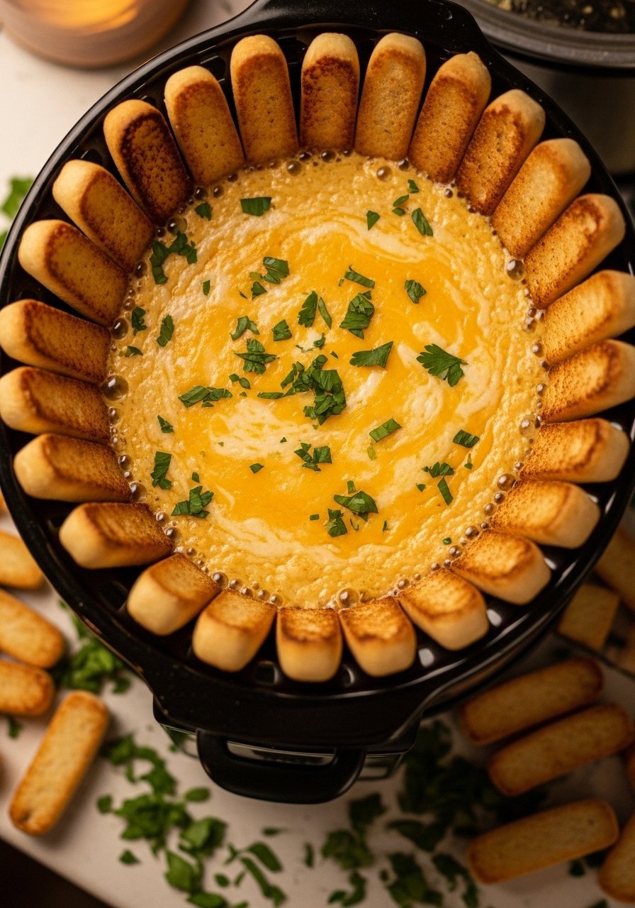 28. Slow-Cooker Cheesy Garlic Dip with Toasts