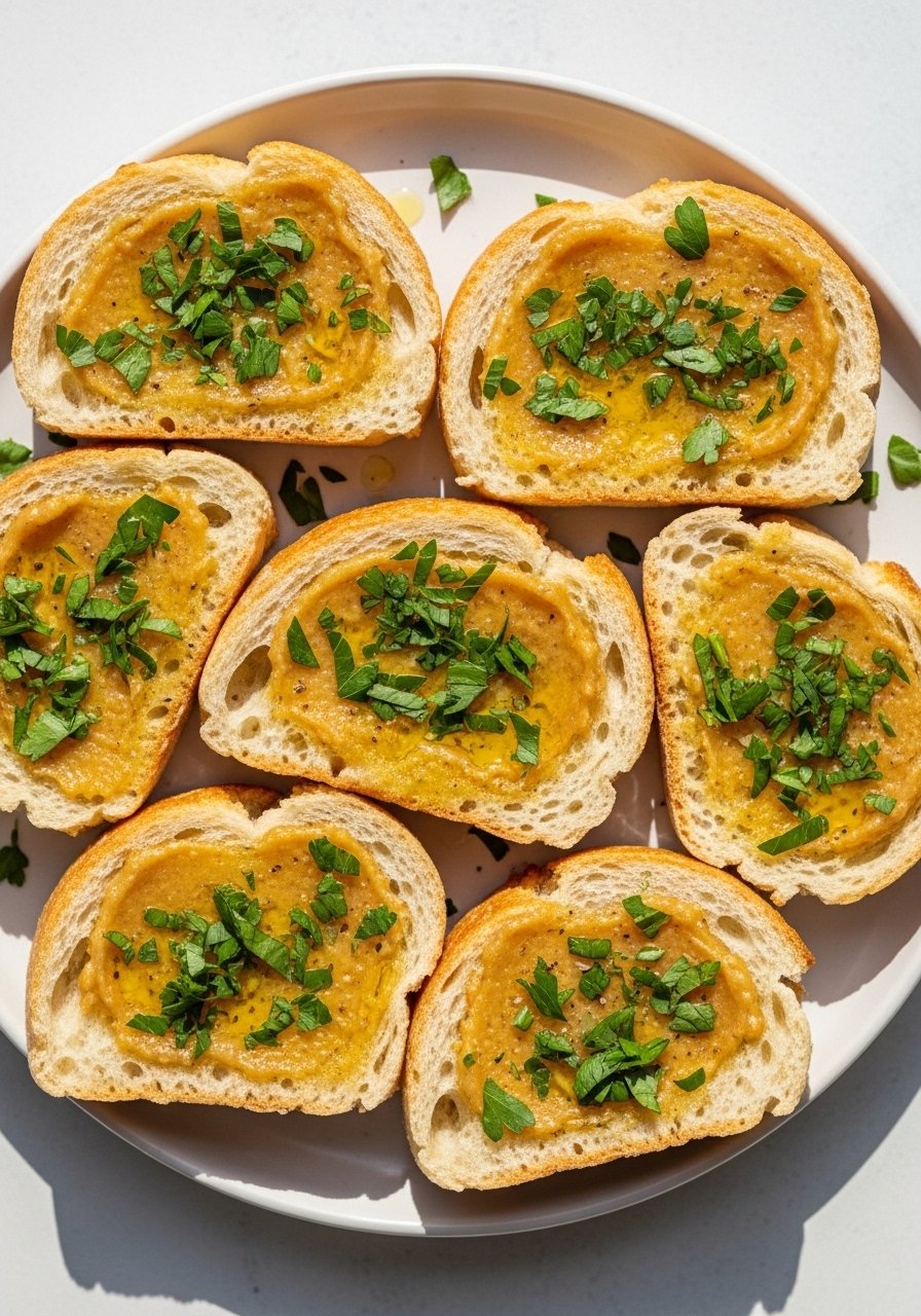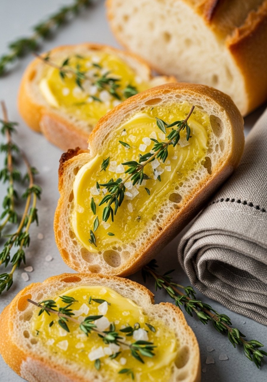 5. Spread garlic confit butter on cut sides and bake 10–12 minutes until golden.