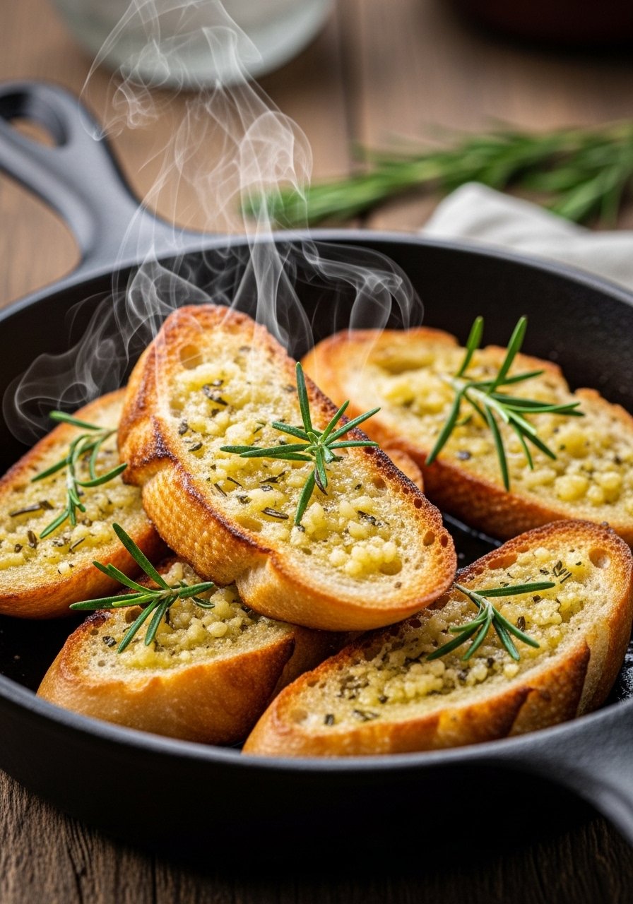 5. Garlic Butter and Rosemary French Bread Wedges (Skillet Crisp)