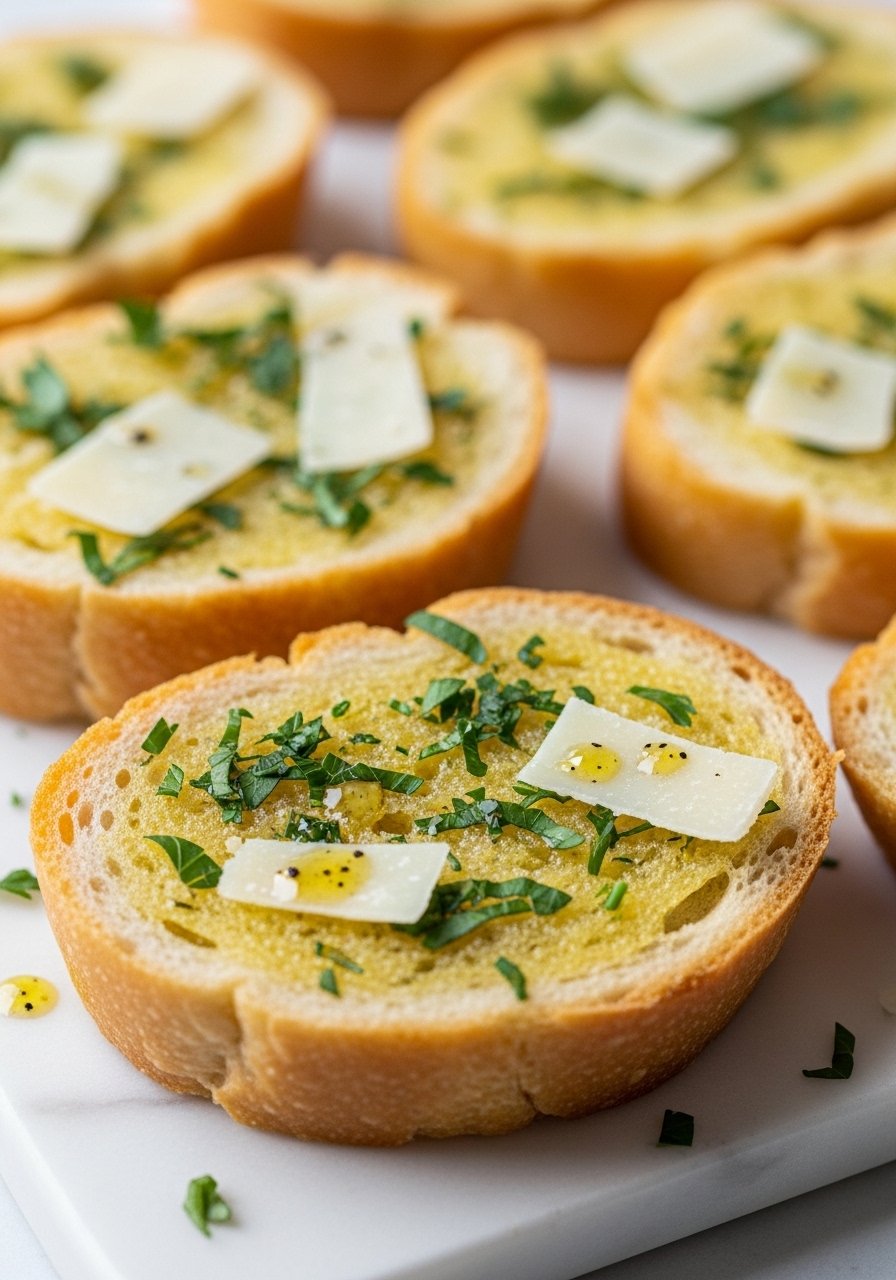 Serve on a wooden board with extra parsley. Add a small bowl of marinara for dipping and pair with a light red wine or iced tea. Store leftovers in an airtight container in the fridge up to 2 days and reheat under the broiler for 3–4 minutes. Make ahead: spread butter and wrap in foil; broil before serving.