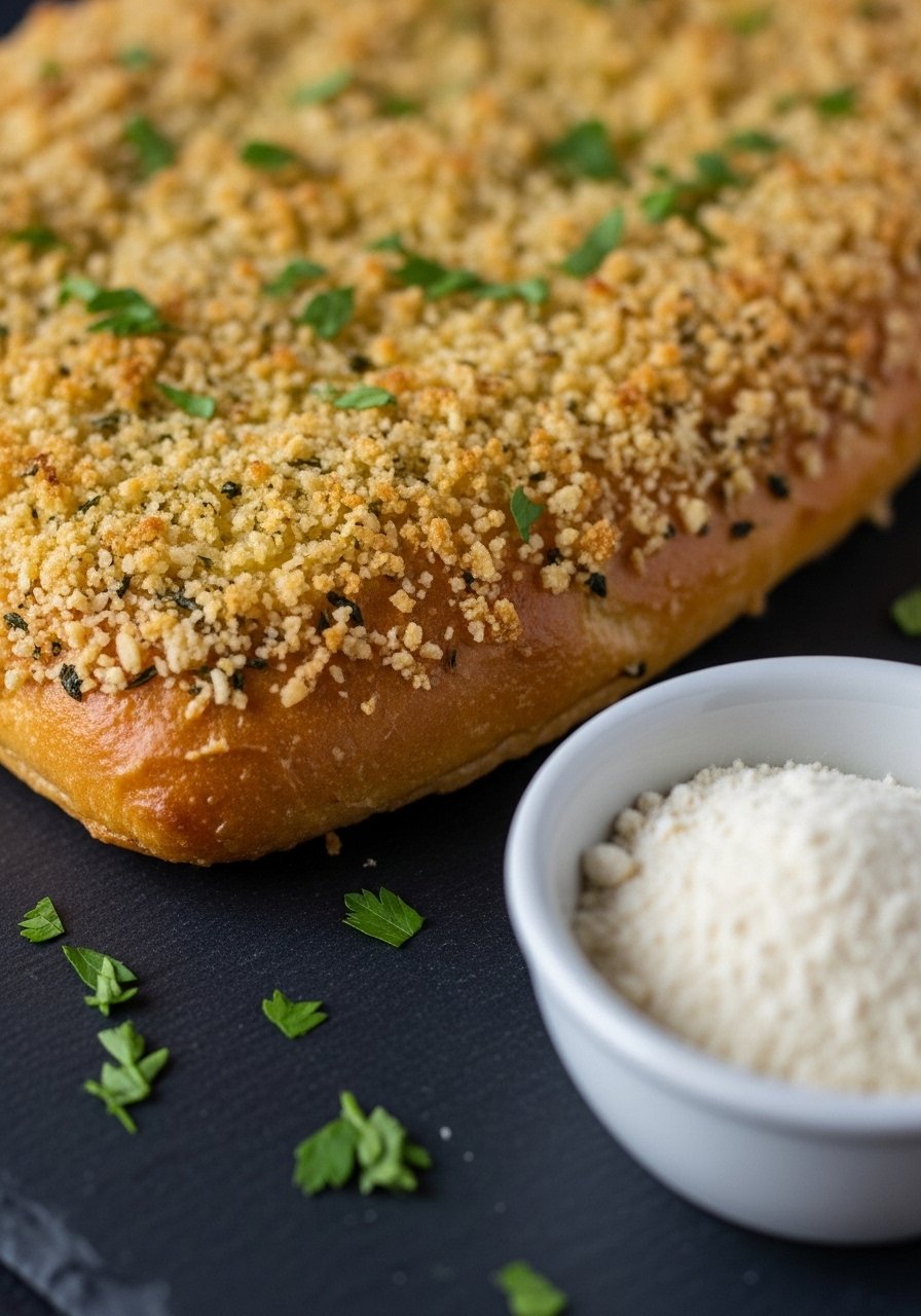This recipe bakes a crisp, cheesy crust that stays crunchy even as the interior remains soft and buttery. The Parmesan breadcrumb topping gives a crunchy texture and nutty flavor. For consistent browning, I use silicone baking mats.