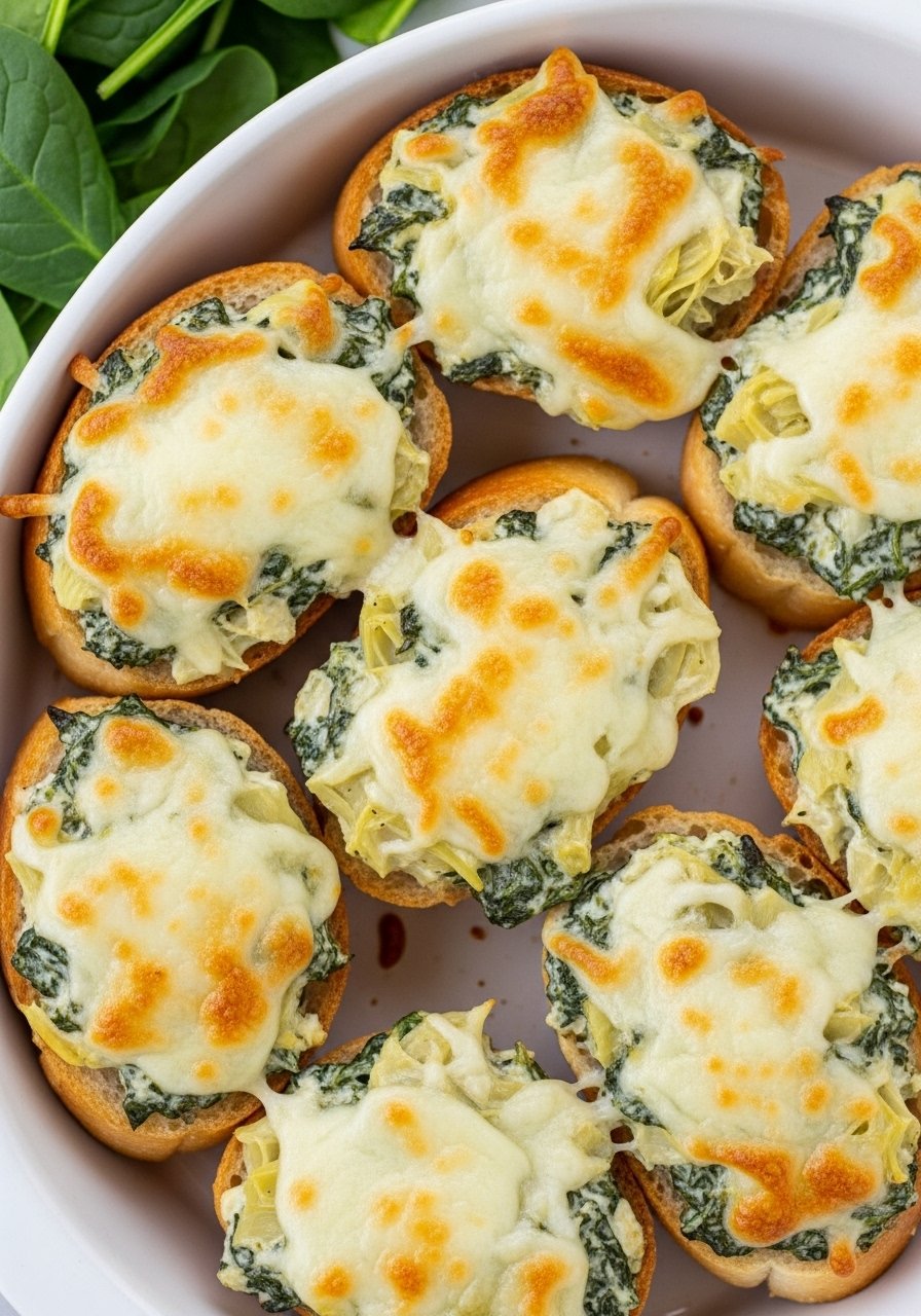 This creamy spinach-artichoke topping turns garlic bread into a decadent dip-meets-toast. The interior stays soft while the top bubbles and browns. I mix fillings in a food processor for quick prep.