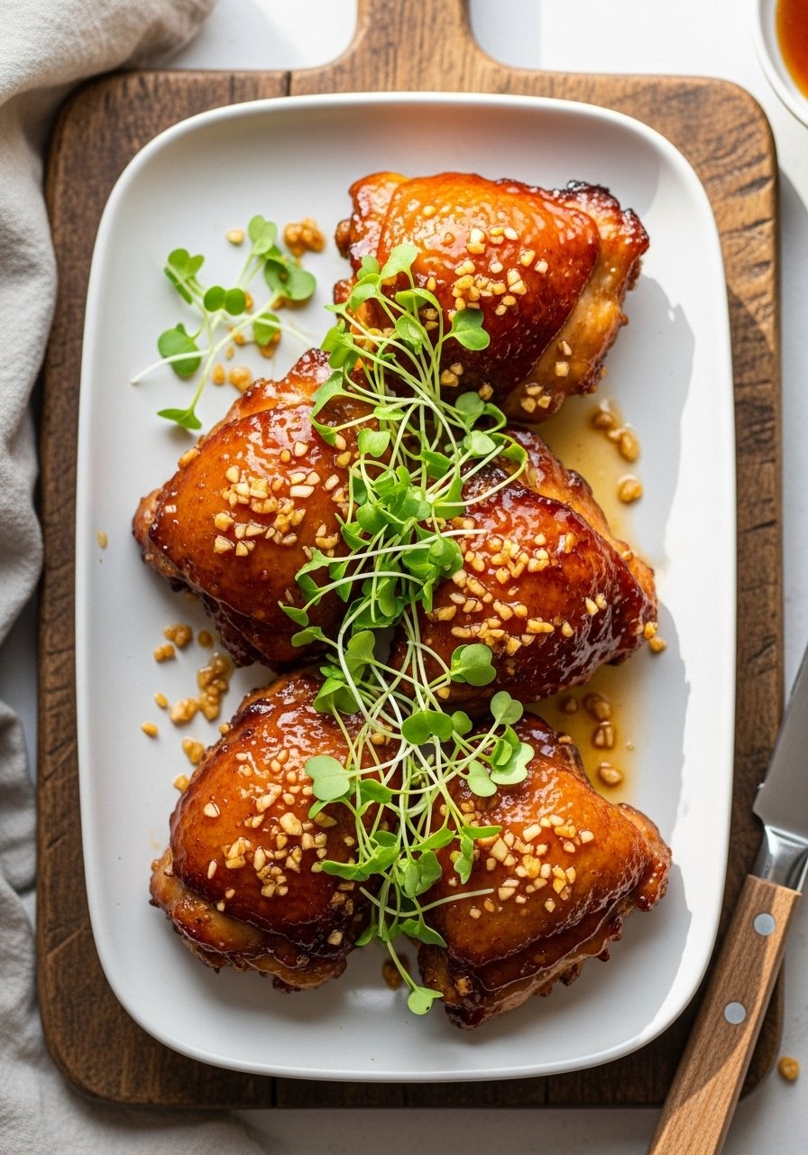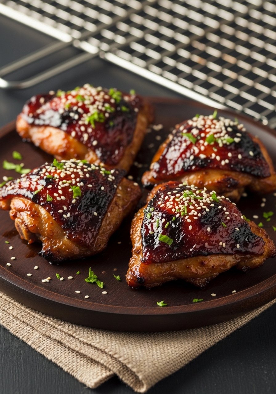 Sweet, salty, and slightly sticky, these teriyaki thighs get a glossy finish from a reduced glaze. The texture is tender and juicy with caramelized edges—ideal for a grill-night with Asian-inspired sides.