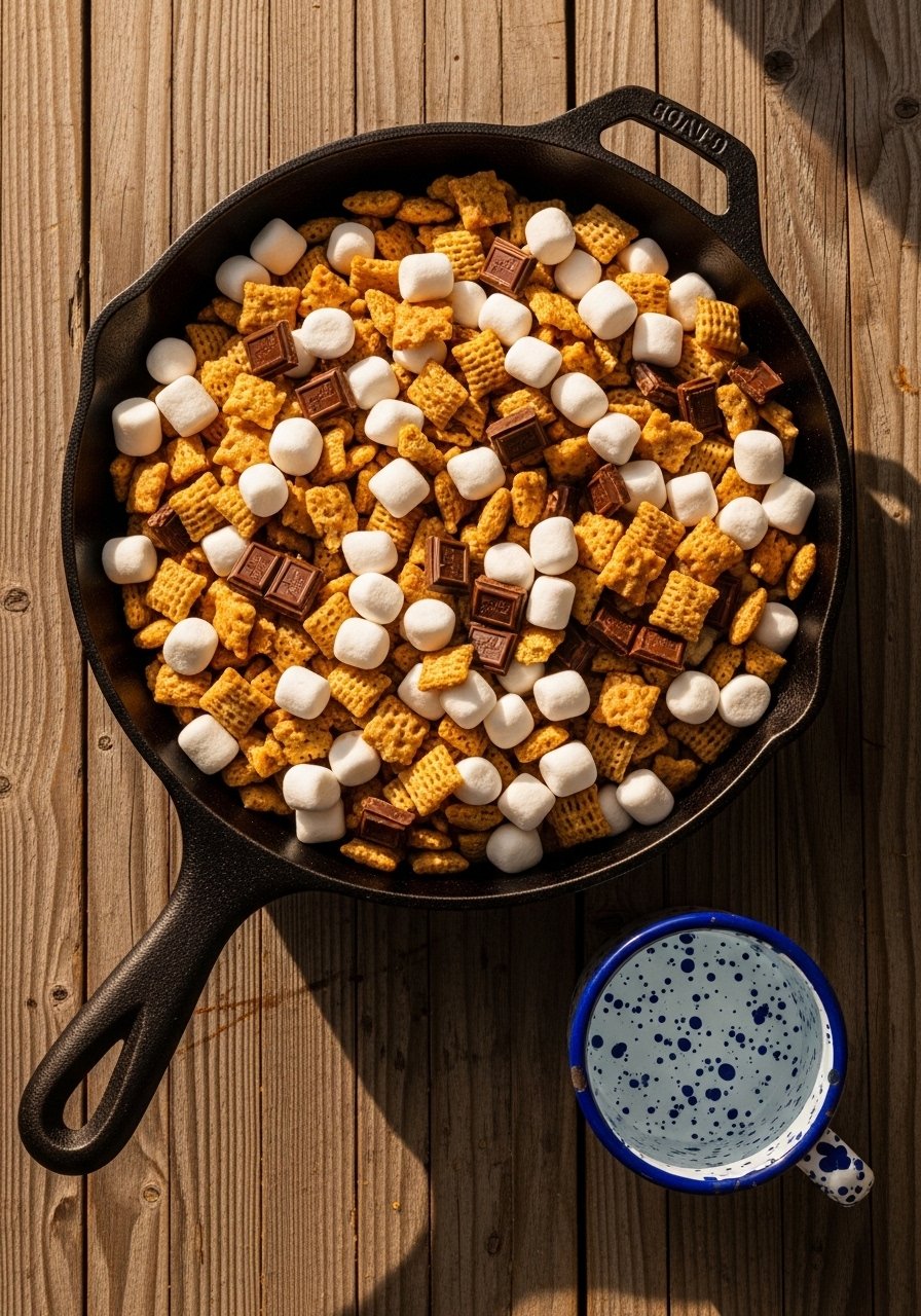 This mix channels campfire s’mores—gooey marshmallows, melty chocolate, and crunchy graham pieces. The toasted marshmallow aroma is irresistible and kids and adults both go back for seconds. Use a cast iron skillet to toast pieces gently if you want a charred scent.