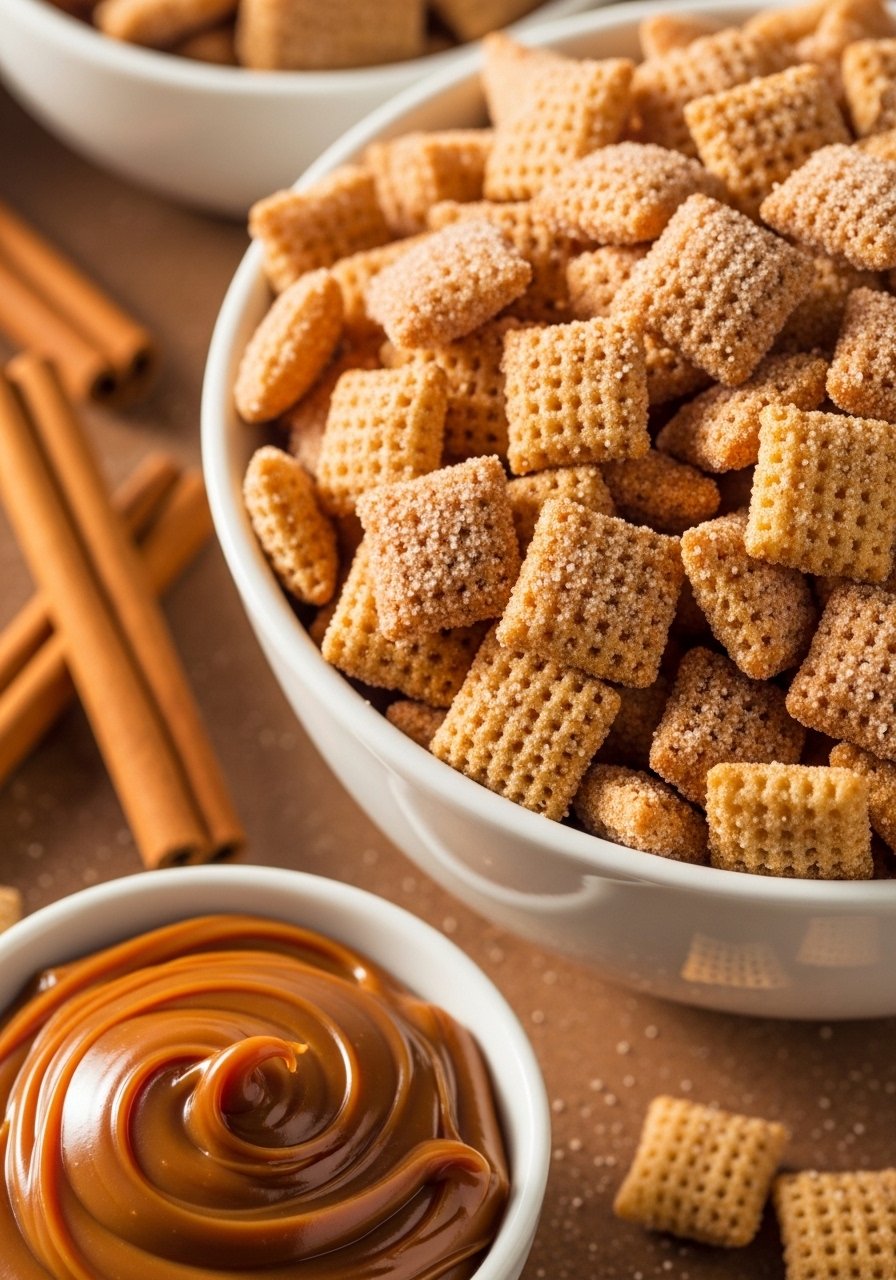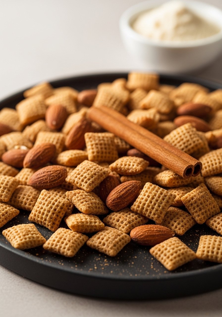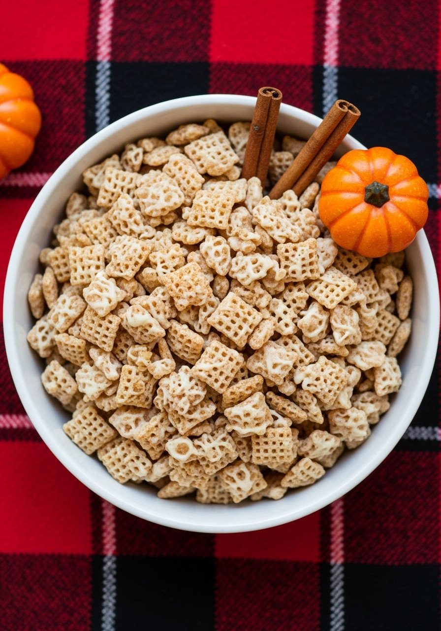 A seasonal favorite—pumpkin spice and creamy white chocolate coat crunchy Chex. This mix smells like fall and tastes like a bakery treat, brightened by a hint of cinnamon and nutmeg. Fans of spice-laden sweets will adore this one.