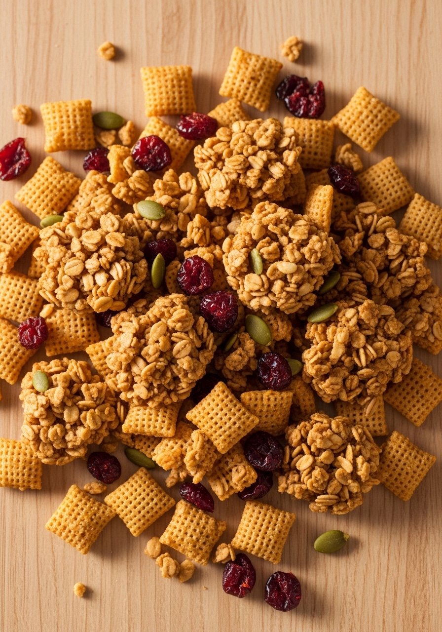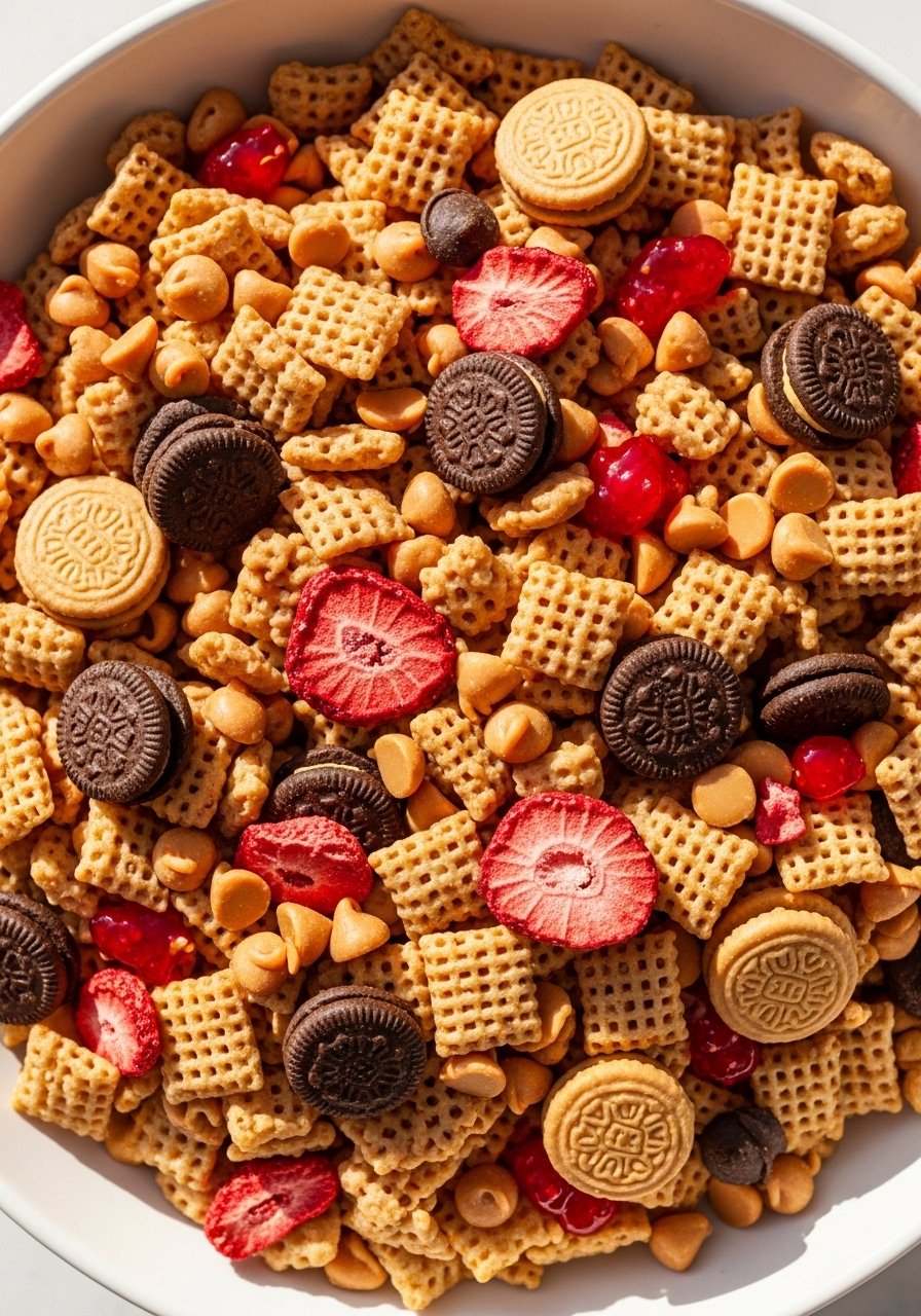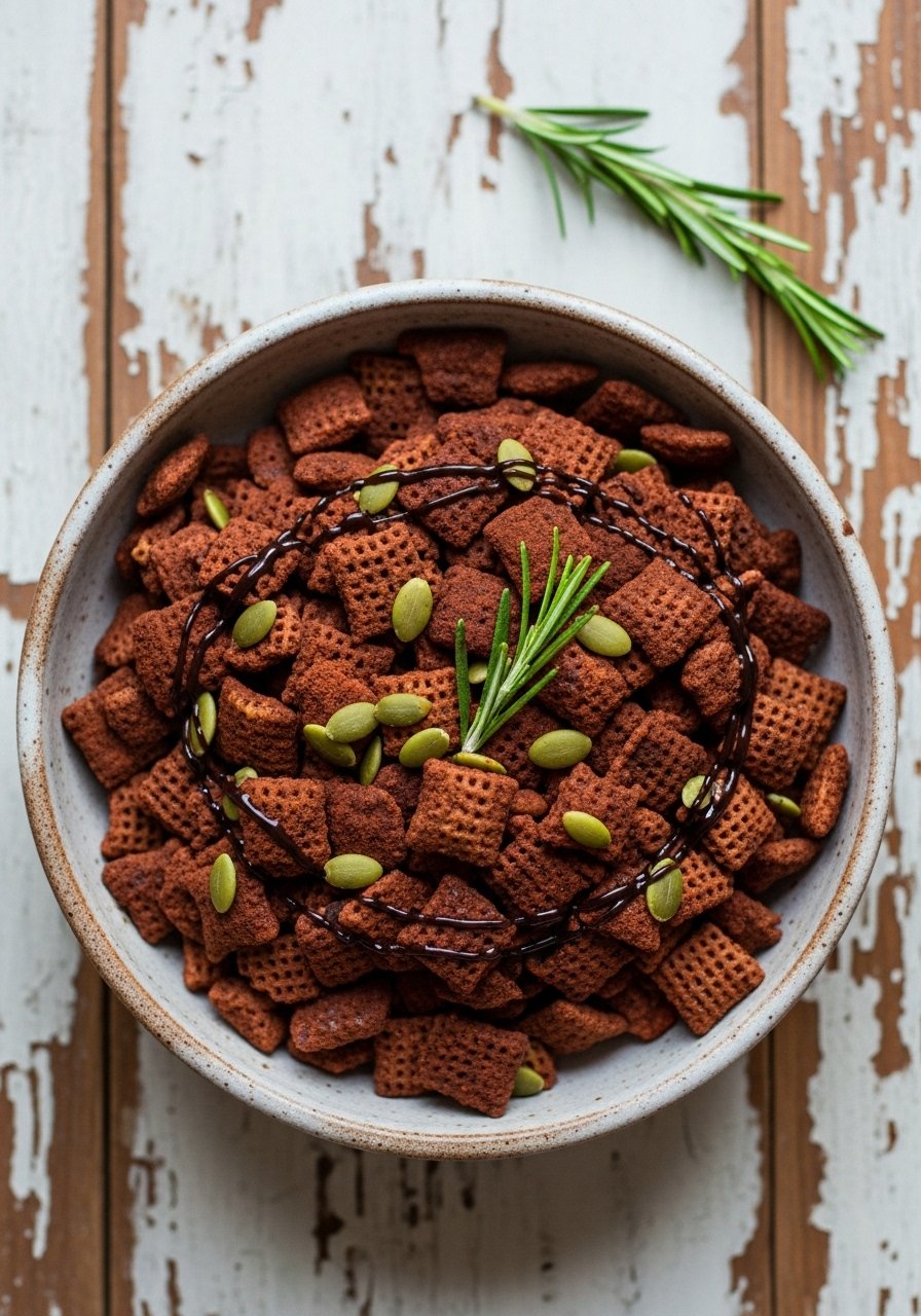 A bark-inspired Chex mix that’s part bark, part cereal—layers of chocolate, chopped candies, and nuts make hand-held pieces perfect for parties. The texture is crunchy and snap-filled with candy pockets.
