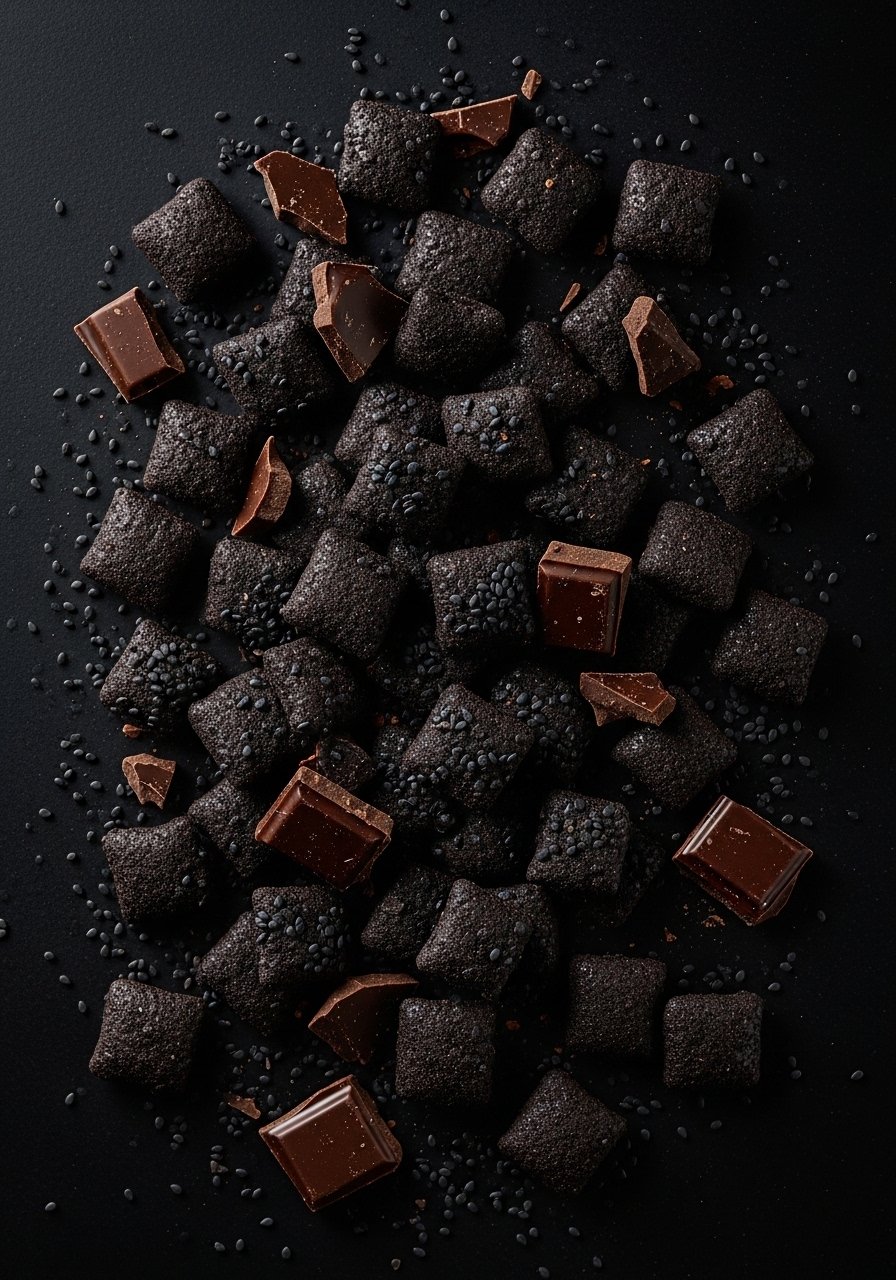 For a gothic look, black cocoa dust and dark chocolate create a dramatic, deep-chocolate mix. The flavor is bittersweet and intense—perfect for an adult-themed Halloween party.