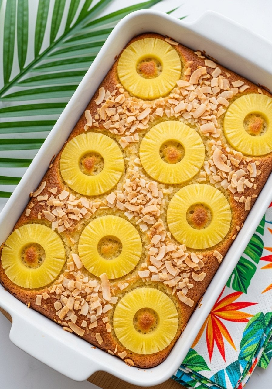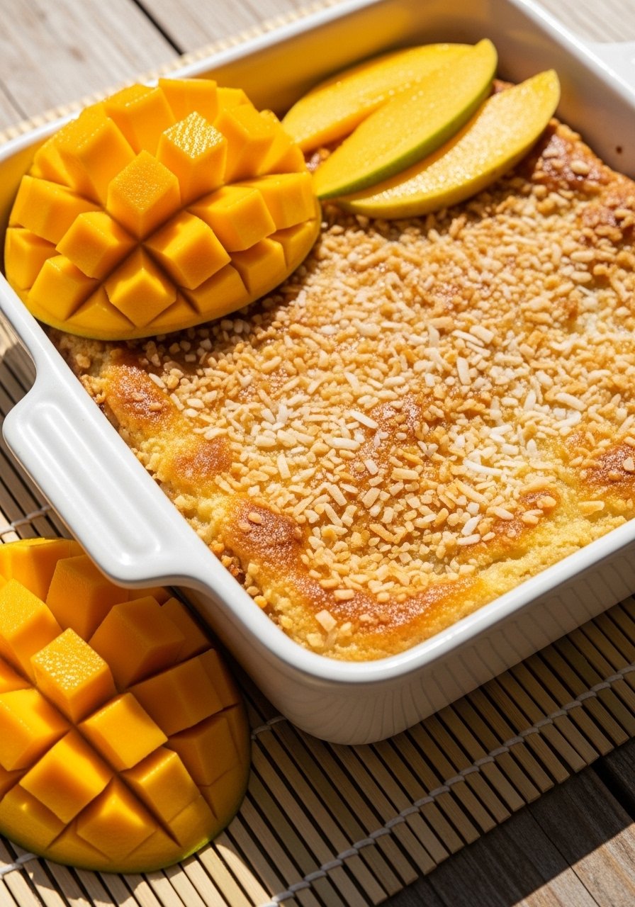 Top with toasted coconut and a spoonful of ricotta or Greek yogurt. Pairs well with iced tea or a light dessert wine. Store in a covered dish for up to 4 days; reheat in a 350°F oven for 8–10 minutes.
