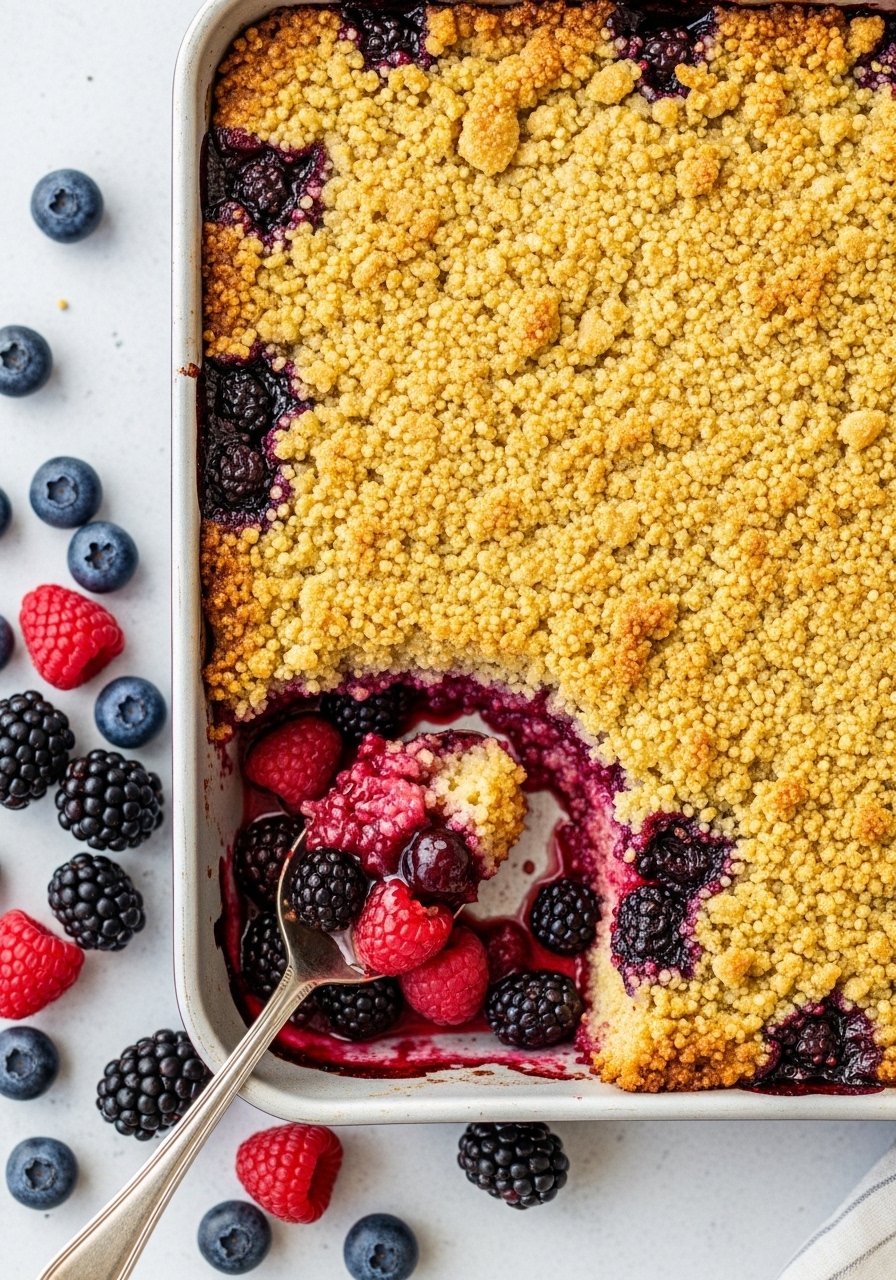 17. Mixed Berry Quinoa Crumble Dump Cake (Gluten-Free, Lower Sugar)