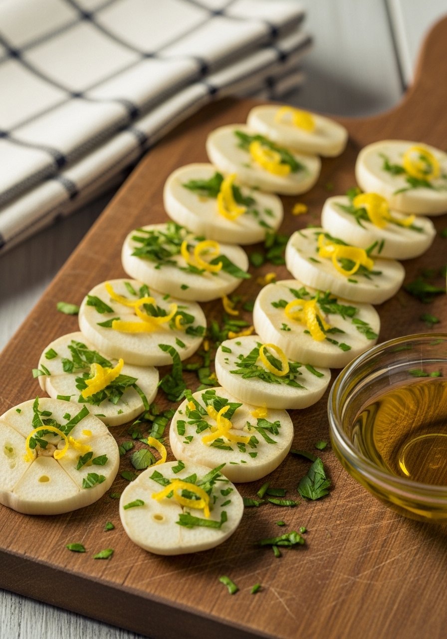 - Arrange on a wooden board and sprinkle extra parsley and lemon zest for brightness.