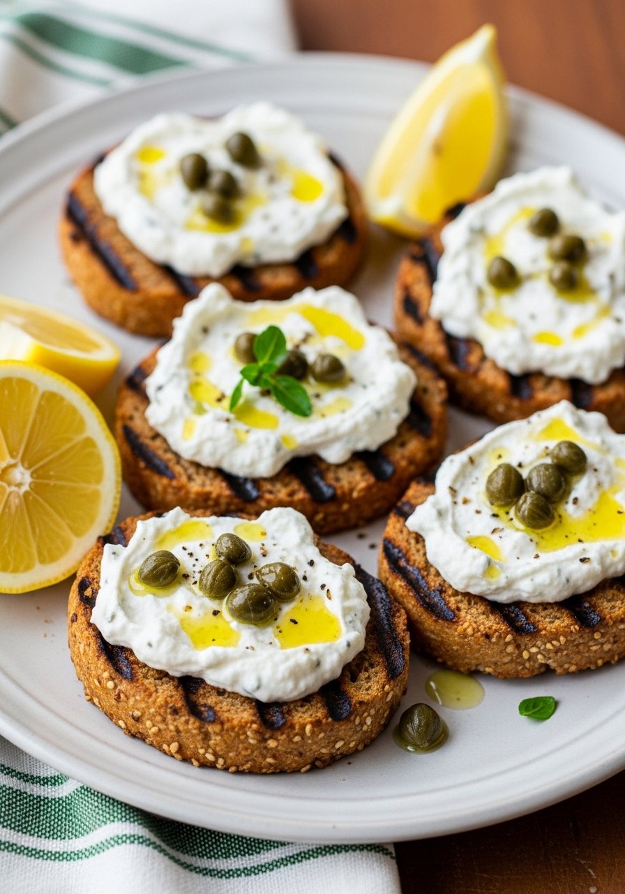 3. Greek Yogurt Garlic Spread on Grilled Whole Grain Rounds