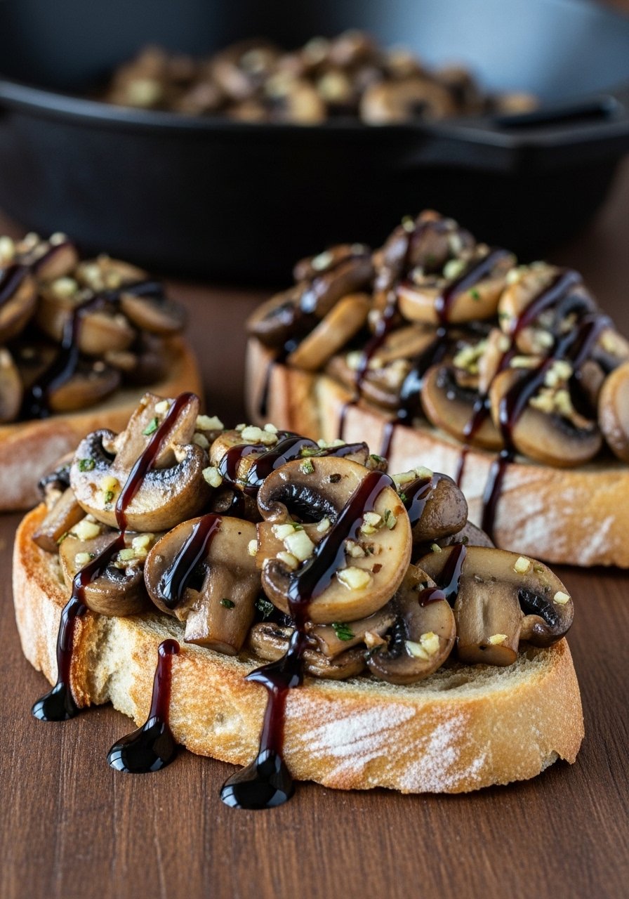 17. Garlic & Mushroom Toasts with Balsamic Glaze