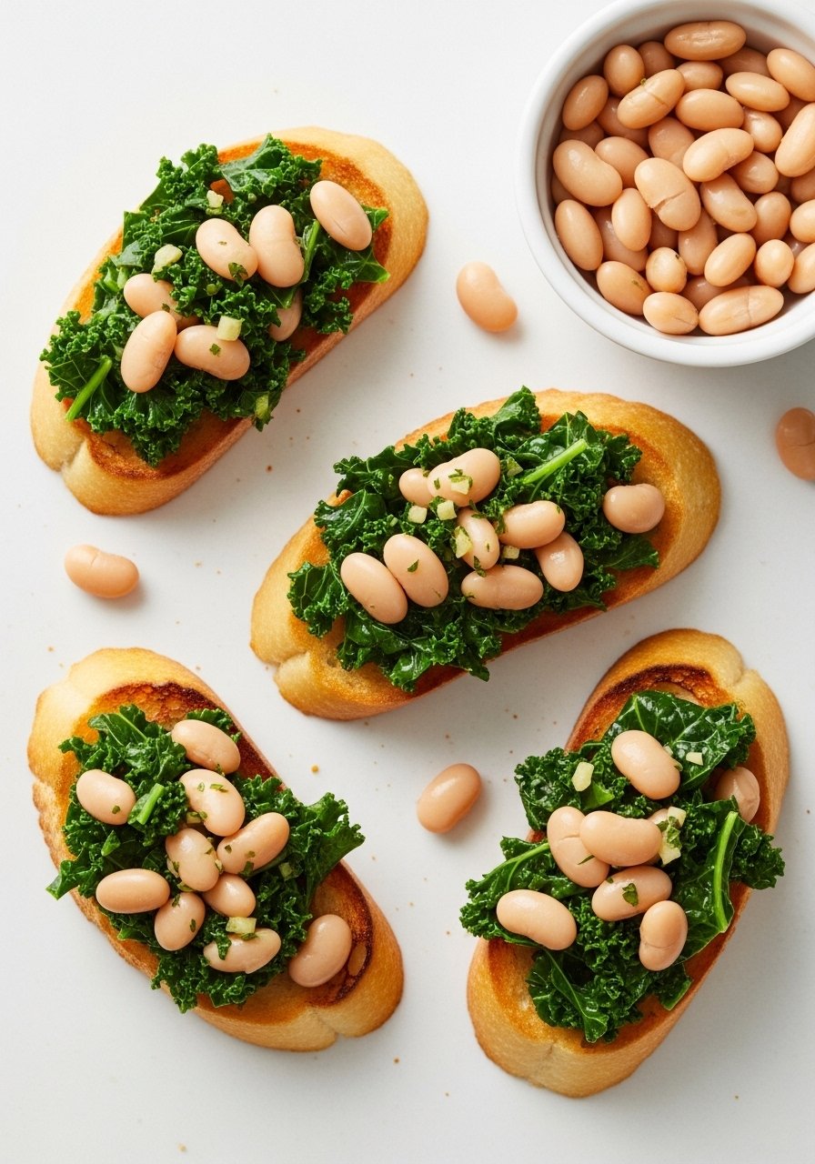 Kale adds fiber and body while white beans bring creaminess and protein. This bruschetta is filling, garlicky, and perfect for sharing.
