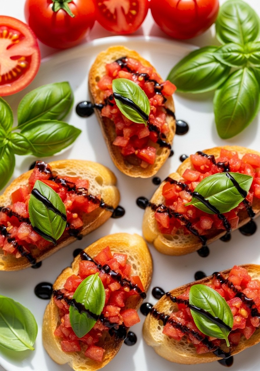 20. Garlic & Tomato Bruschetta with Balsamic Reduction