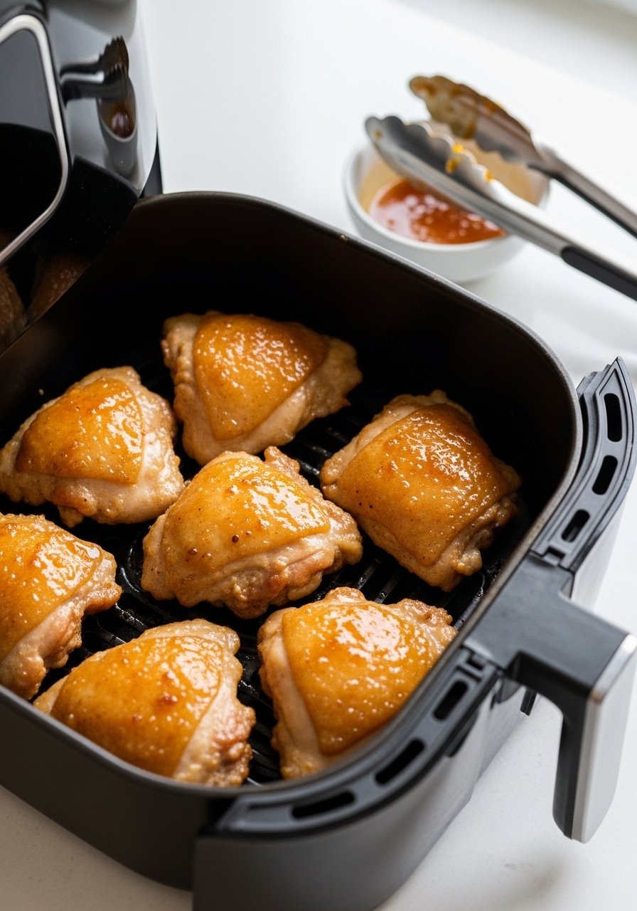 - Place thighs skin-side down in the basket, spaced (cook in batches if needed).