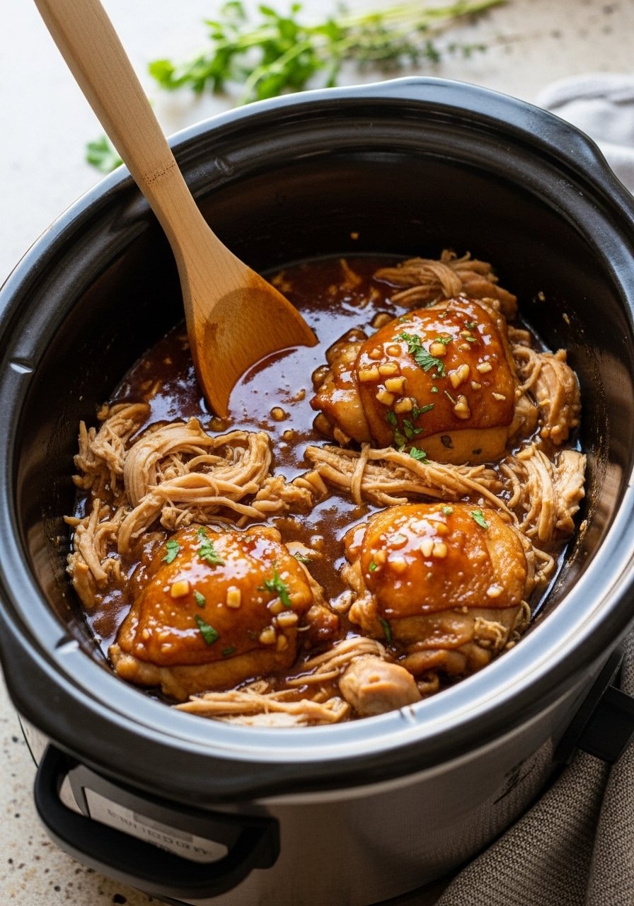 4. Slow Cooker Honey Garlic Chicken Thighs (Set & Forget)