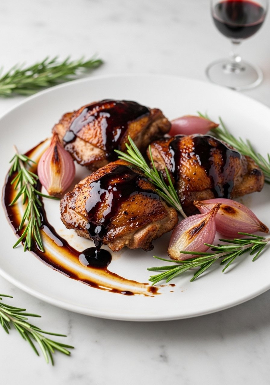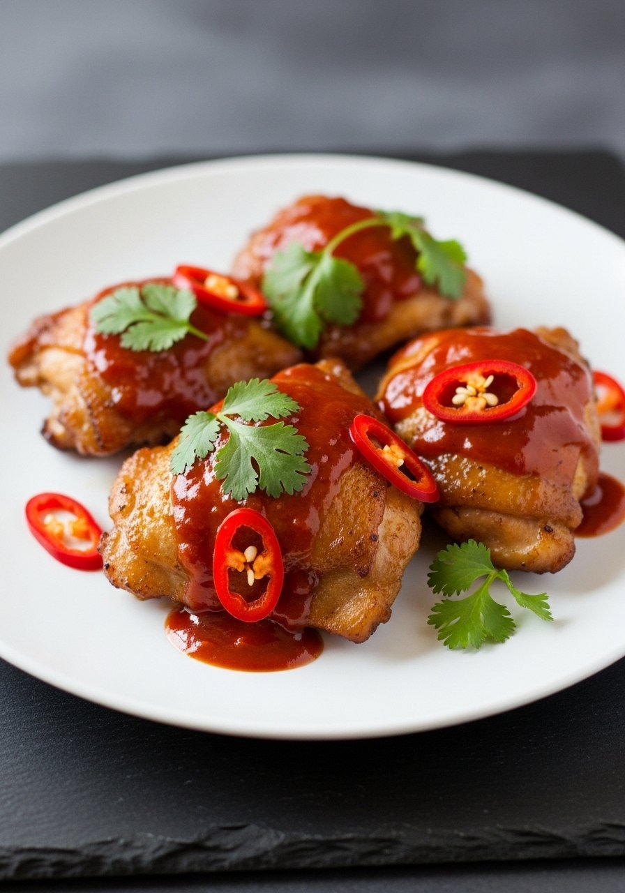 - Simmer 10–12 minutes until internal temp is 165°F, spooning glaze over thighs.