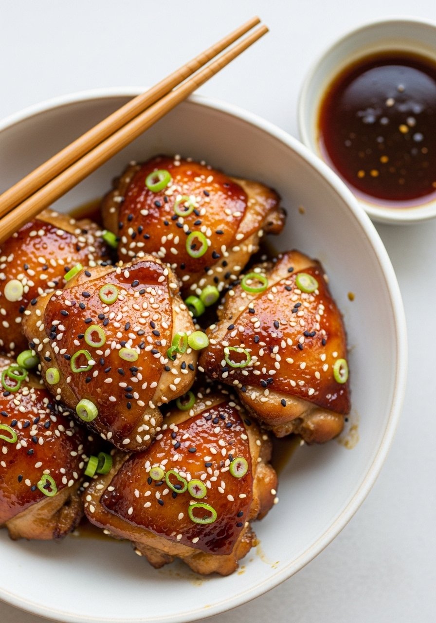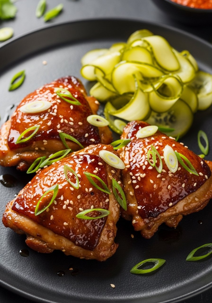 - Toss cooked thighs in sauce or brush generously. Garnish with scallions.