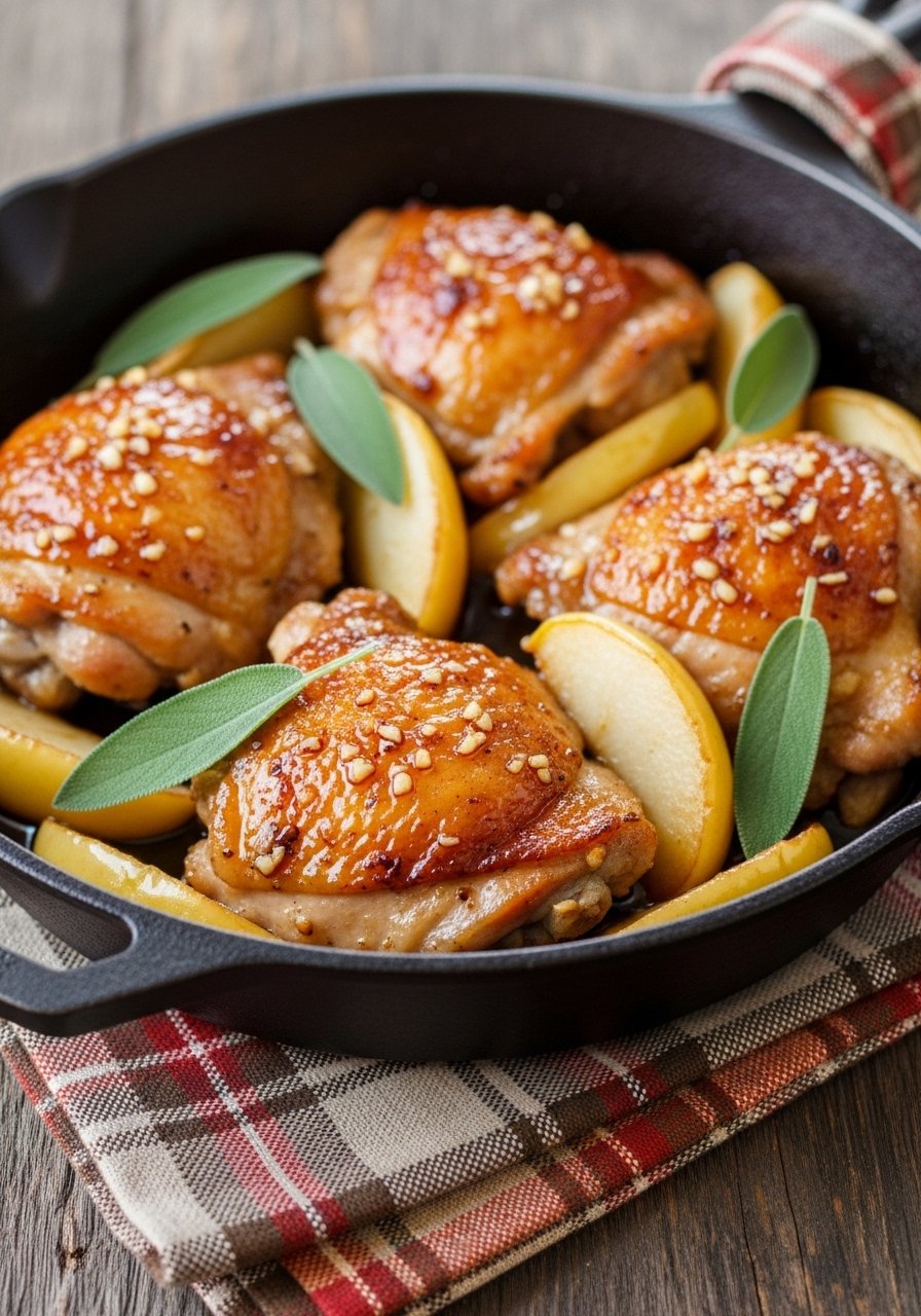 - Heat a cast iron skillet over medium-high and add olive oil. Sear thighs skin-side down until golden, 6–8 minutes. Flip and brown 3 minutes.
