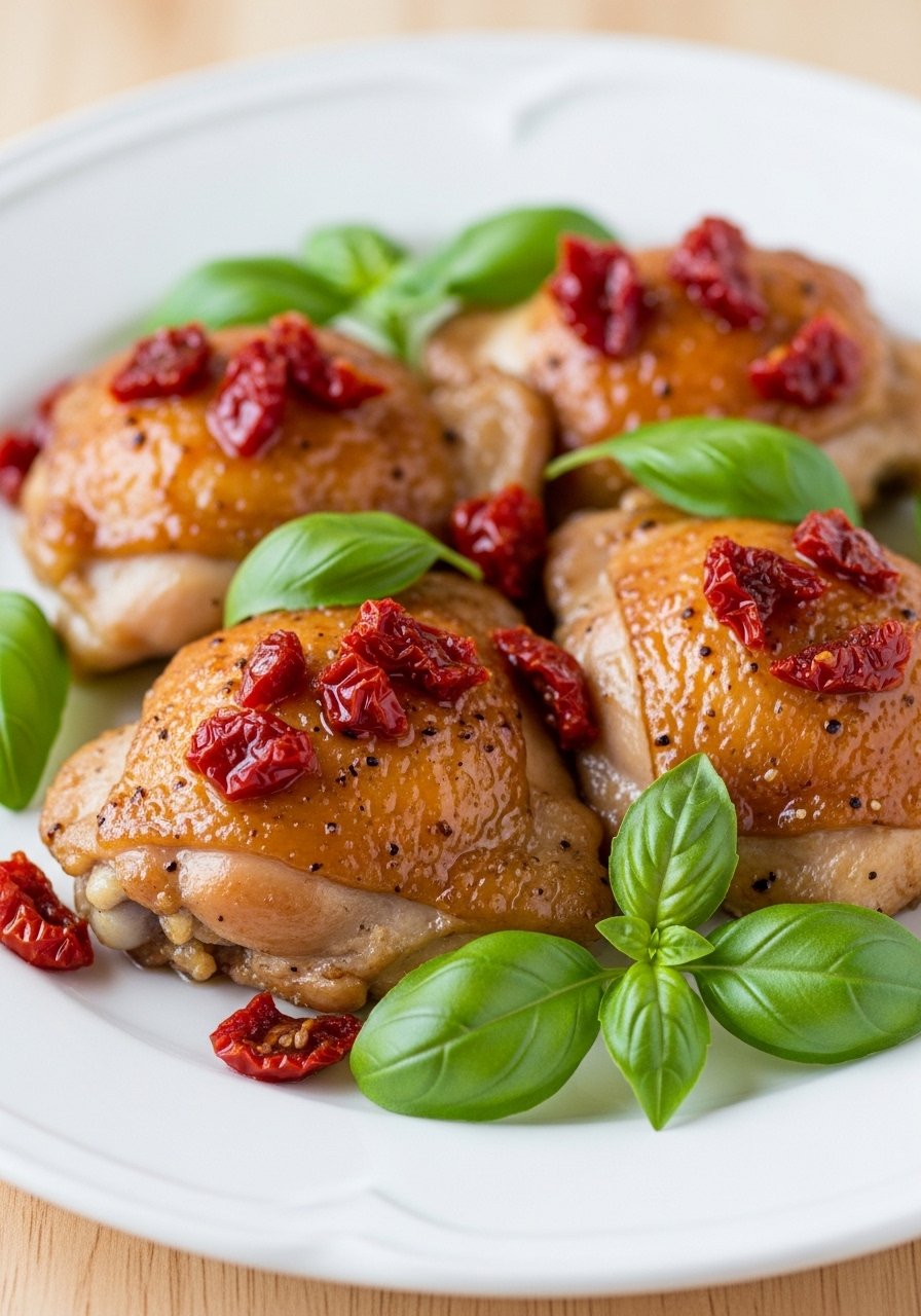 21. Honey Garlic Chicken Thighs with Sun-Dried Tomato & Basil