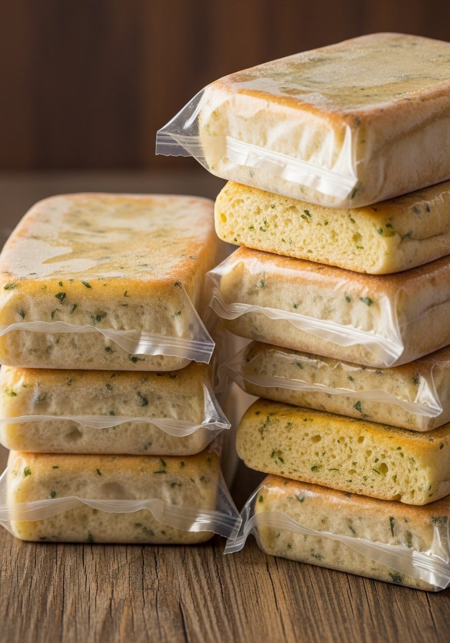 Two reliable methods keep garlic bread crispy: flash-freeze in single layers, or remove air completely with a vacuum sealer.