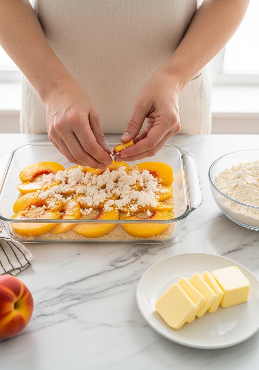 Mixing and Assembling Your One-Pan Peach Dump Cake