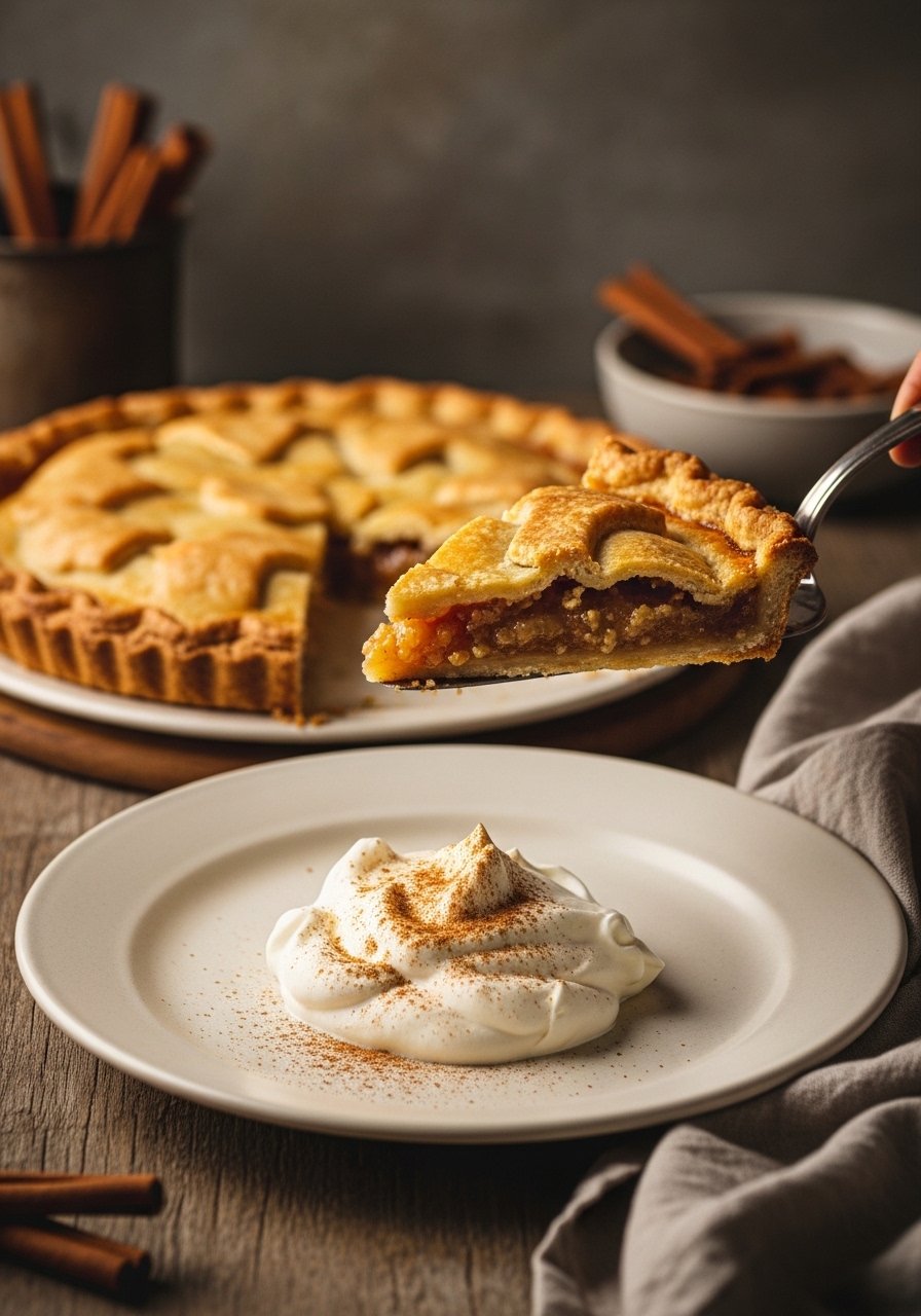 When serving, use a pie server to keep slices neat. Want a handheld option? Top mini ramekins with the same method for individual servings.