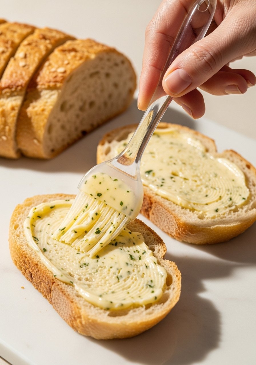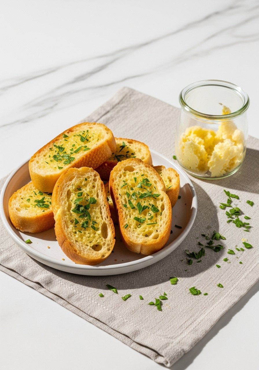 Start by cooling your expectations: this takes about 20–30 minutes from start to finish. For 4–6 servings, you'll need 1 loaf (French or Italian), 1/2 cup (1 stick) unsalted butter, 4–6 cloves fresh garlic, and herbs.