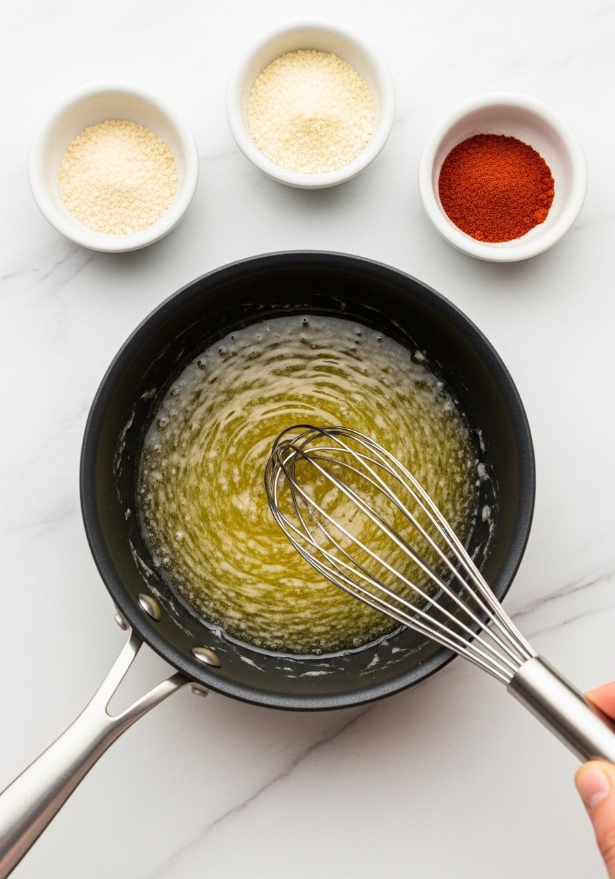 Warm just until melted and combined, whisking with a silicone whisk. Don’t boil—too hot makes the butter separate and the coating greasy.