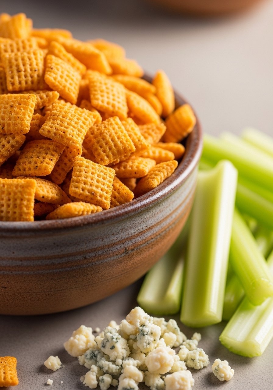 This spicy-sour mix channels buffalo wing flavors for fans of tangy heat. Ranch seasoning and hot sauce coat the pieces, creating craggy, flavorful bites. Great for game nights.