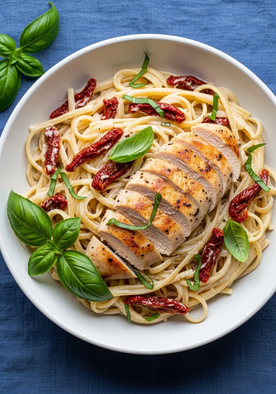 5. Spicy Chicken Alfredo with Sun-Dried Tomatoes and Garlic