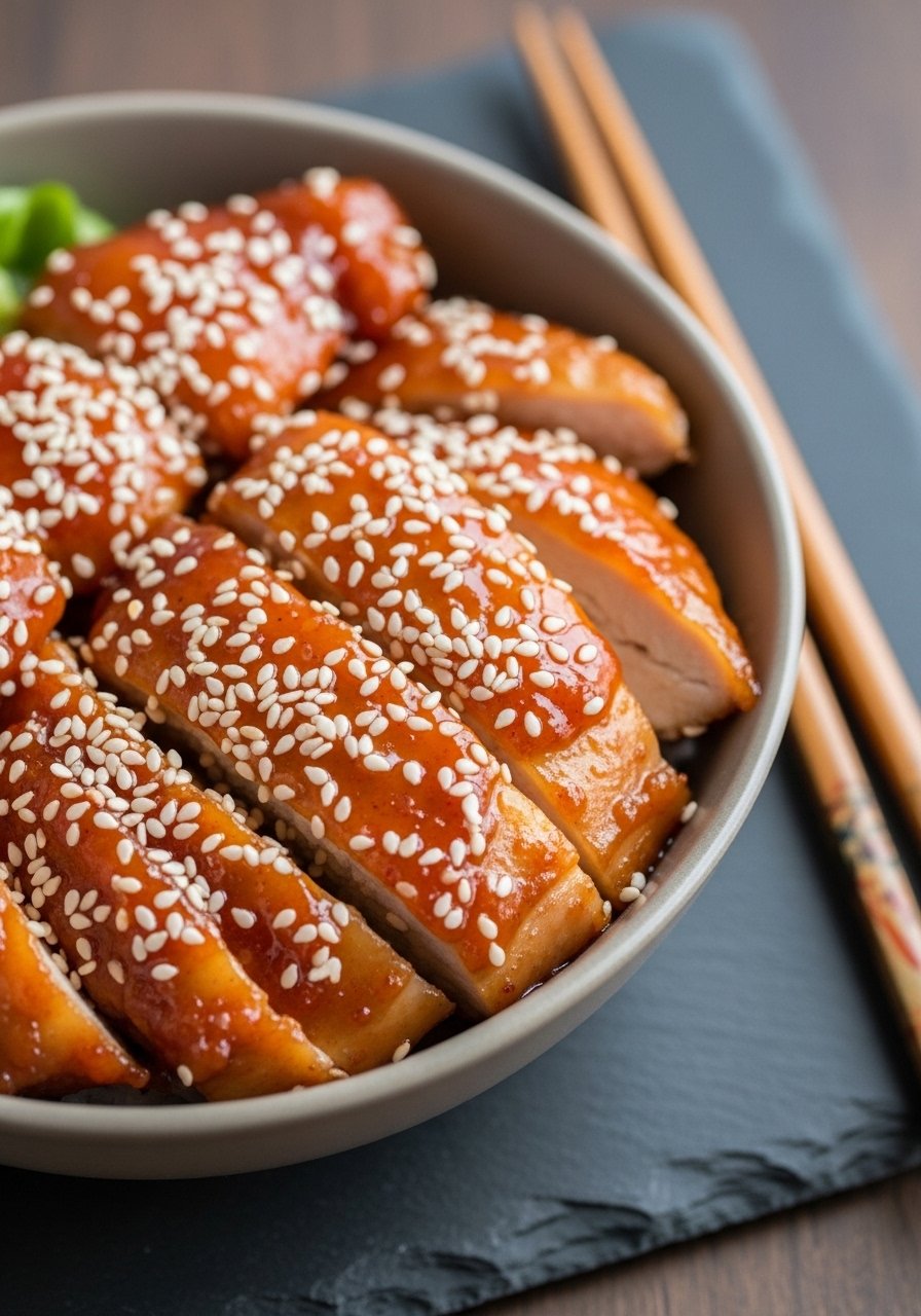 - Marinate chicken briefly in gochujang and soy, then sear to 165°F.