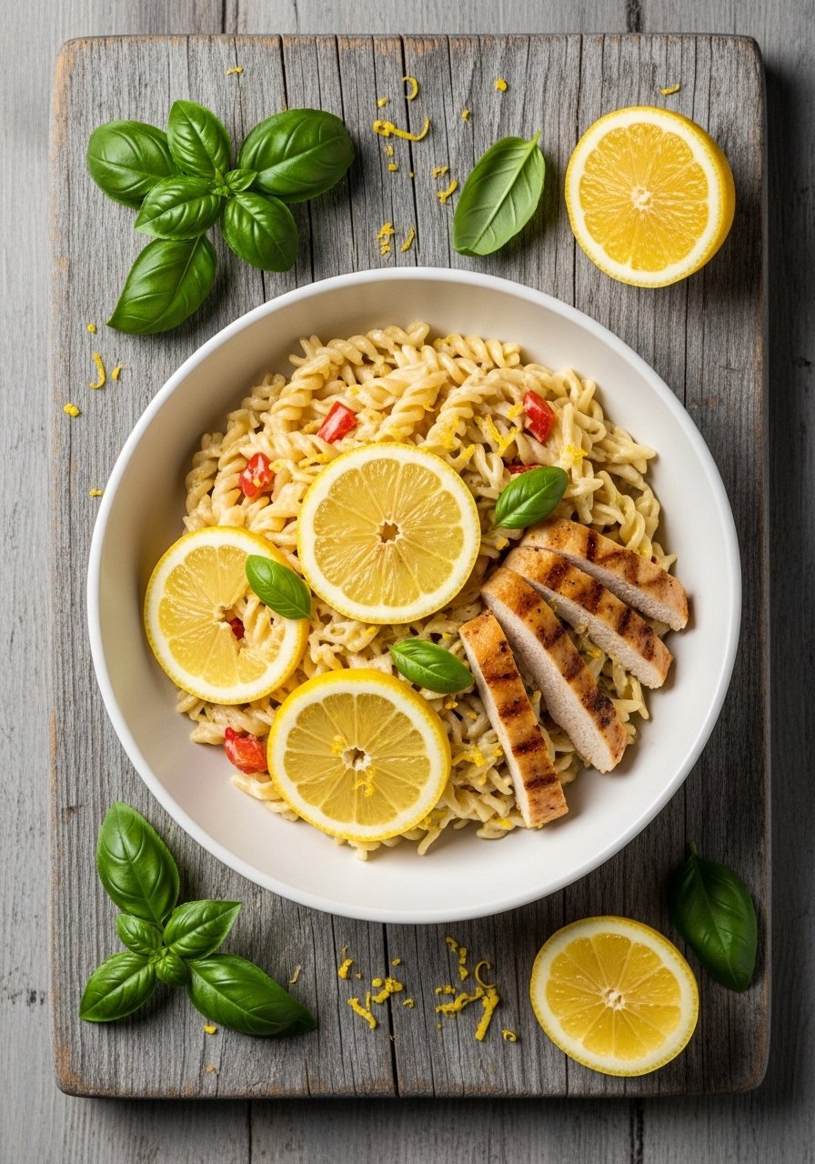 - Top with sliced chicken, sprinkle parsley, and serve with lemon wedges.
