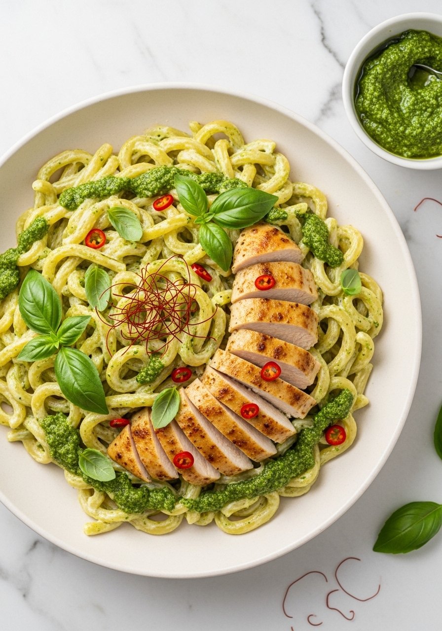 16. Creamy Pesto & Chili Spicy Chicken Alfredo