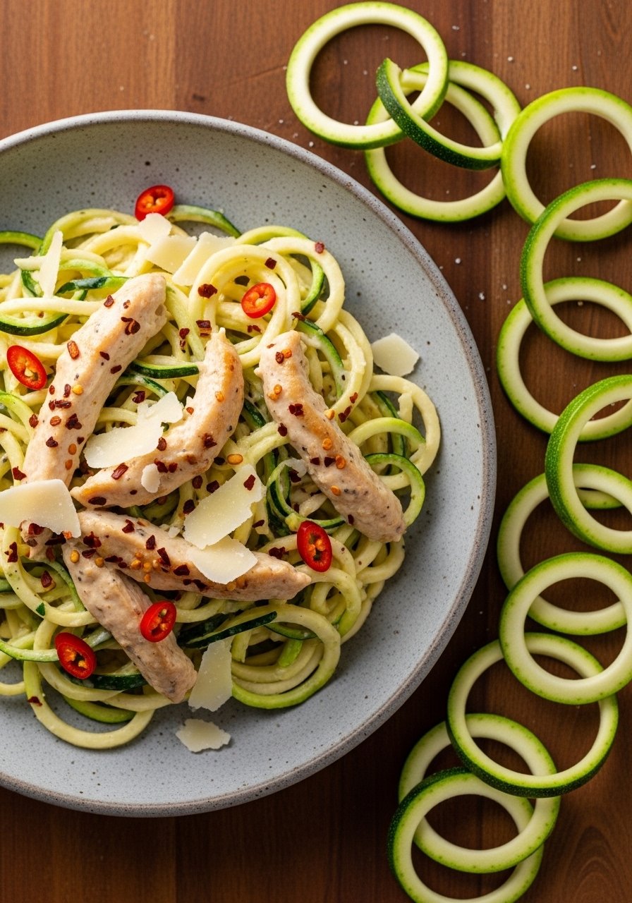 20. Keto Zucchini Noodle Spicy Chicken Alfredo (Low-Carb)